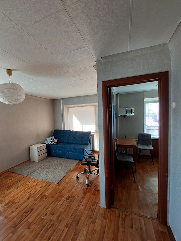 Общая площадь - 30.4 кв.м, кухня - 6 кв.м, жилая - 17.5 кв.м.