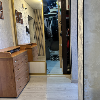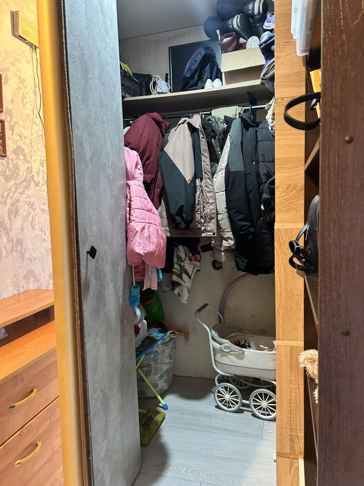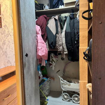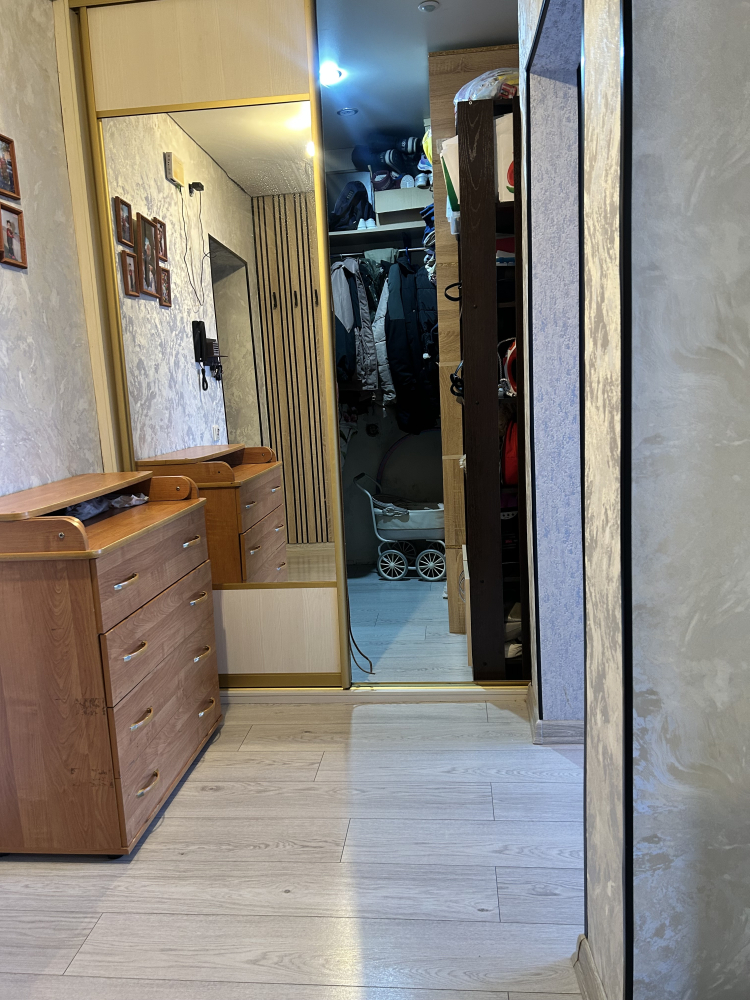 -оборудована вместительная гардеробная, с дверями купе