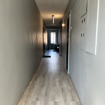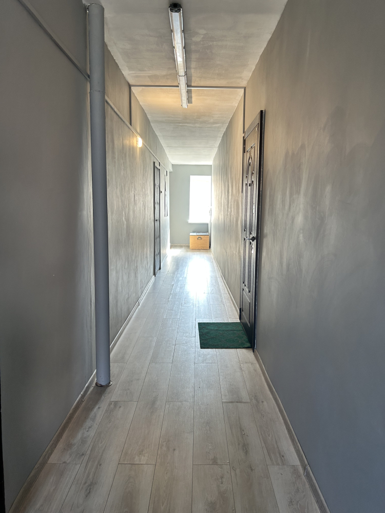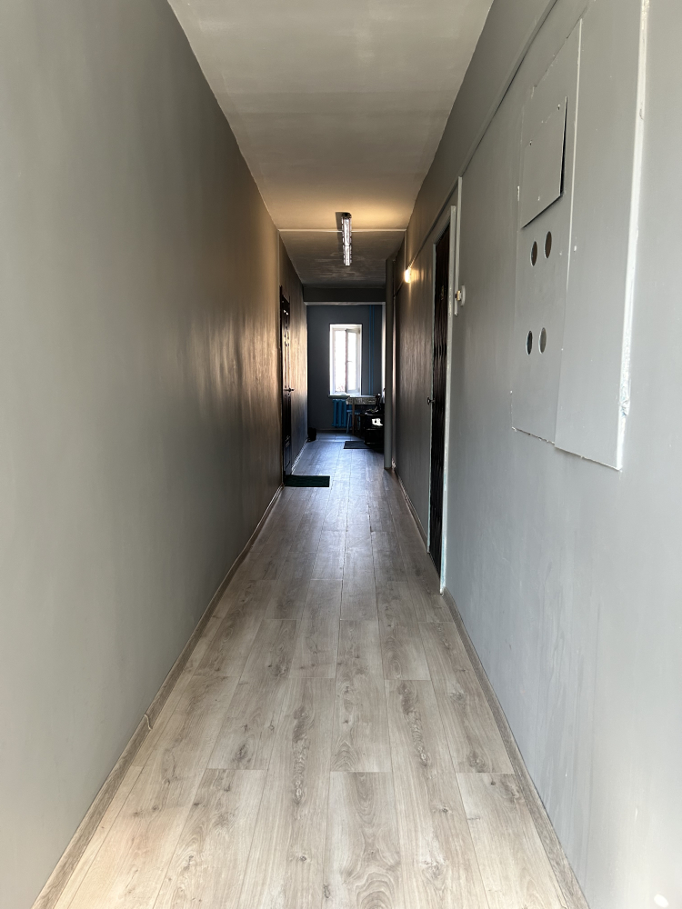 Отдельное слово хочется сказать об общем коридоре. Всего три квартиры пользуются этим помещением с великолепным ремонтом ( выровненные покрашенные стены, на полу керамогранит и ламинат).