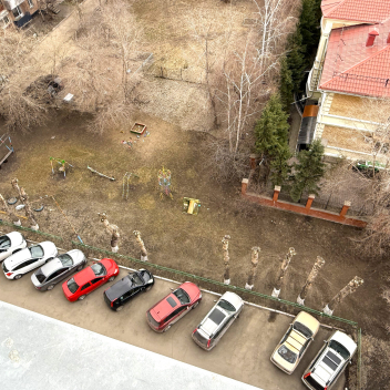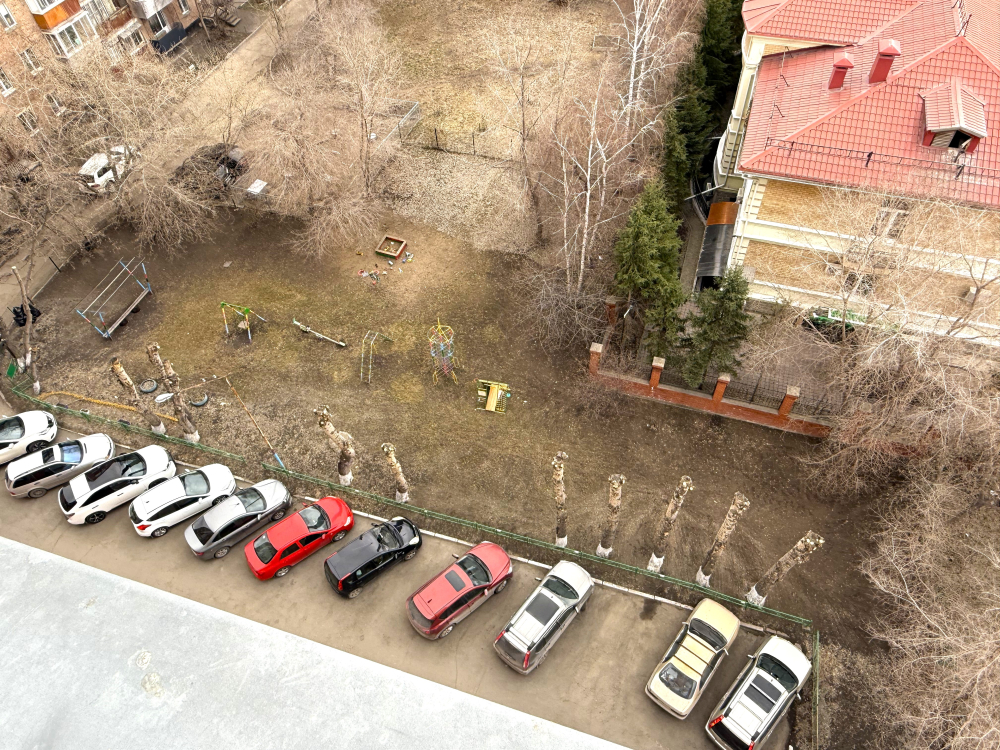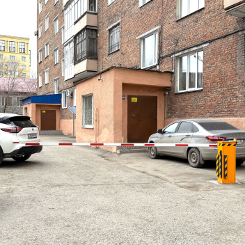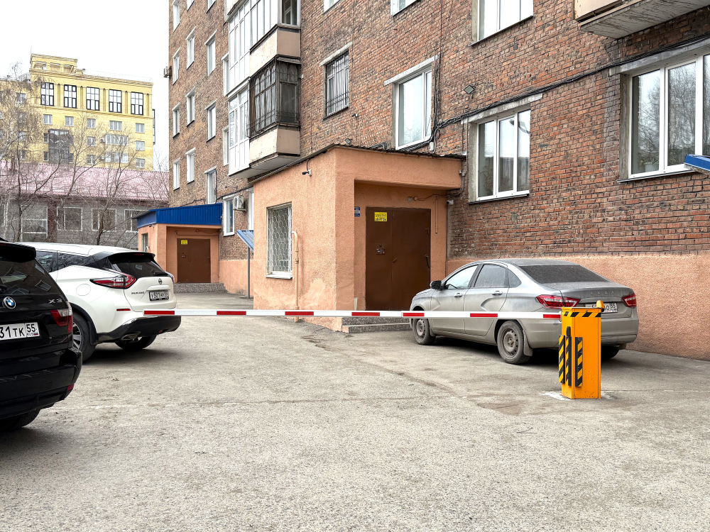 Во дворе детская площадка, есть места для парковки автомобиля, въезд во двор через шлагбаум.