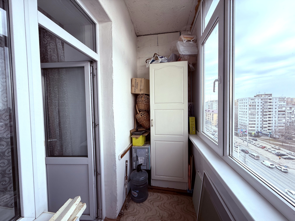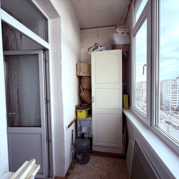 Лоджия выходит из комнаты, застеклена ПВХ.