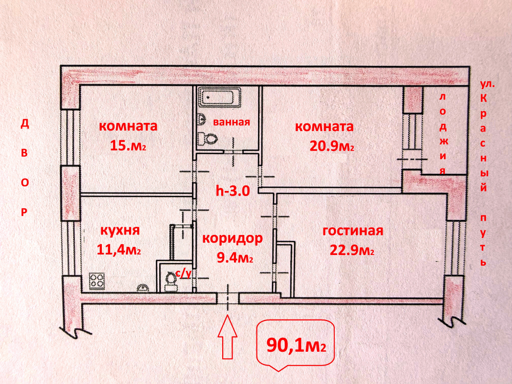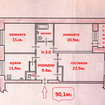 Компания «Аркада-стиль» предлагает к продаже просторную 90,1м2 трехкомнатную квартиру в теплом кирпичном доме.