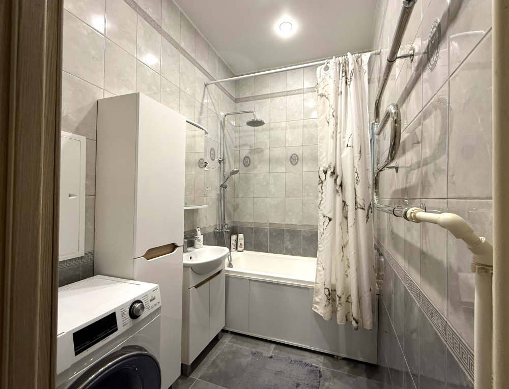 Квартира в хорошем состоянии, стены оклеены обоями приятной цветовой гаммы, на полу качественный линолеум, во всей квартире натяжные потолки.