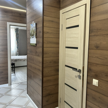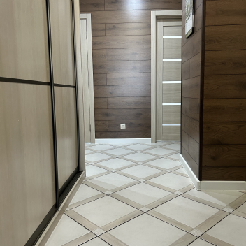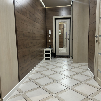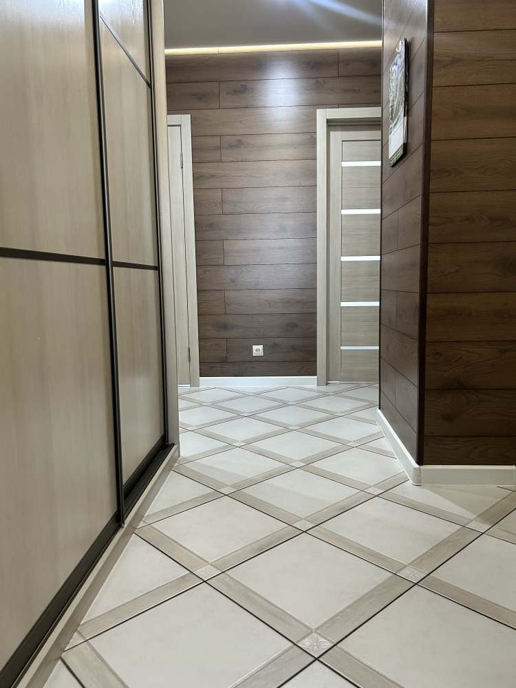 • Входная зона — Уже на входе вас приятно удивит вместительный встроенный шкафа-купе. Они элегантно интегрирован в пространство прихожей, позволяя вам с легкостью разместить всю необходимую одежду и обувь, поддерживая идеальный порядок