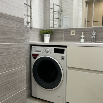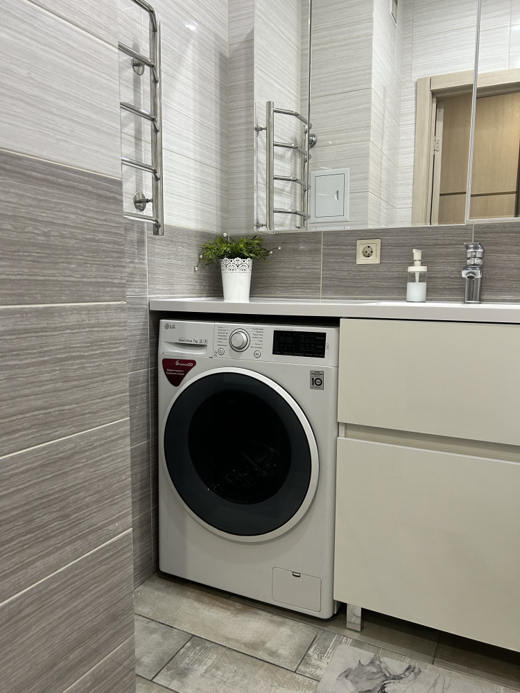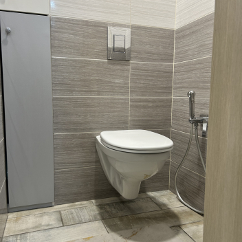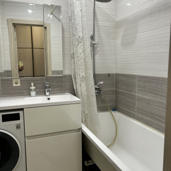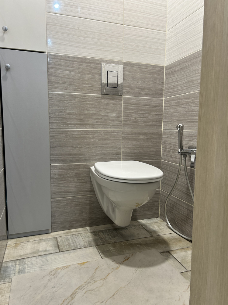 В квартире предусмотрен раздельный санузел, где каждая деталь говорит о качестве. Стены и пол облицованы современной кафельной плиткой, подобранной со вкусом, что обеспечивает не только прекрасный внешний вид, но и долговечность покрытия, легкость в уходе и гигиеничность. Пространство организовано максимально грамотно, обеспечивая комфорт для всех членов семьи.