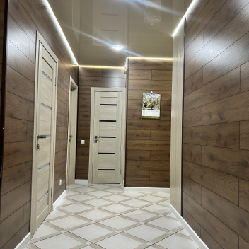 • Свет и стиль: По всей квартире — натяжные потолки с продуманной подсветкой и точечными светильниками. Атмосфера уютного, современного пространства.