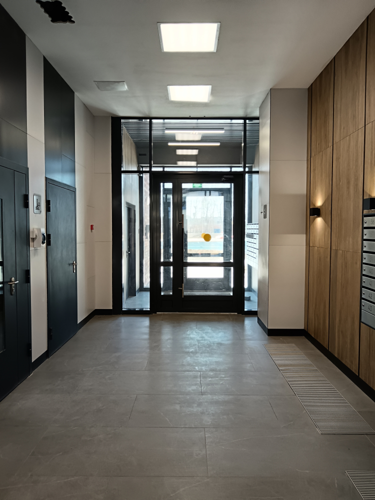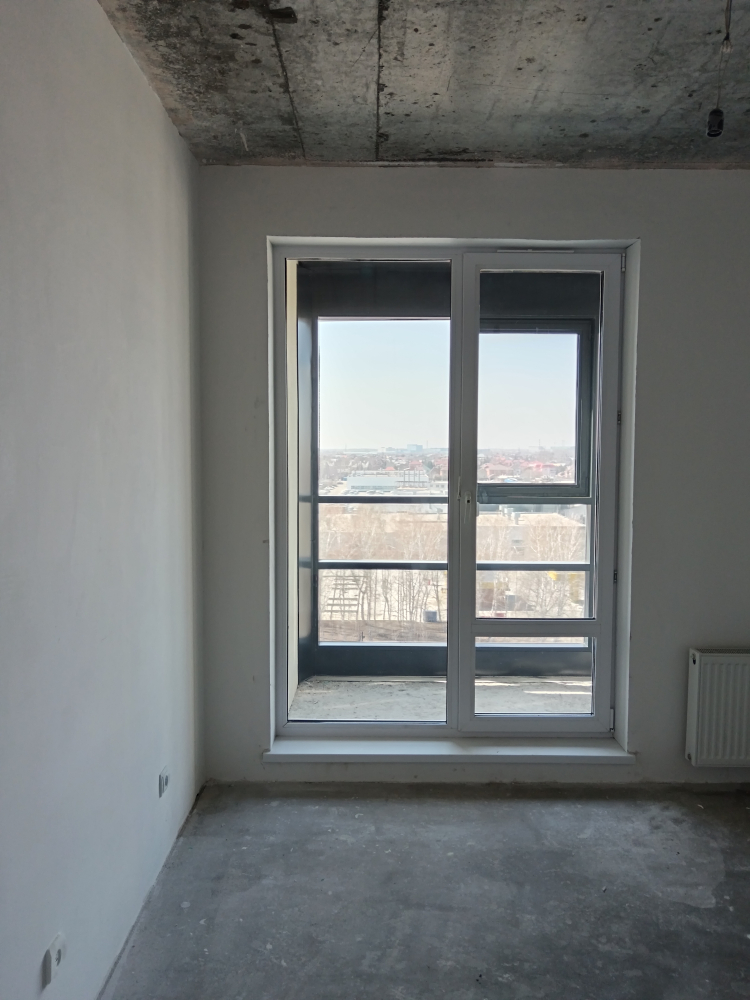 Квартира с предчистовой отделкой: установлены пятикамерные стеклопакеты ПВХ, межкомнатные перегородки, стены оштукатурены, проведена финишная шпаклевка стен.