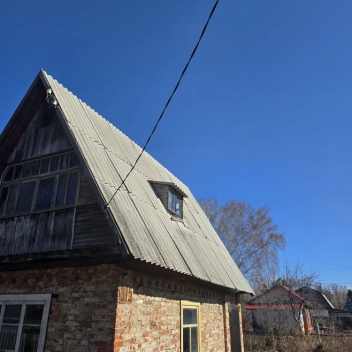По фасаду участок огорожен забором из профлиста (металлическая калитка и ворота для заезда автомобиля). Дом требует ремонта (длительное время не использовался).