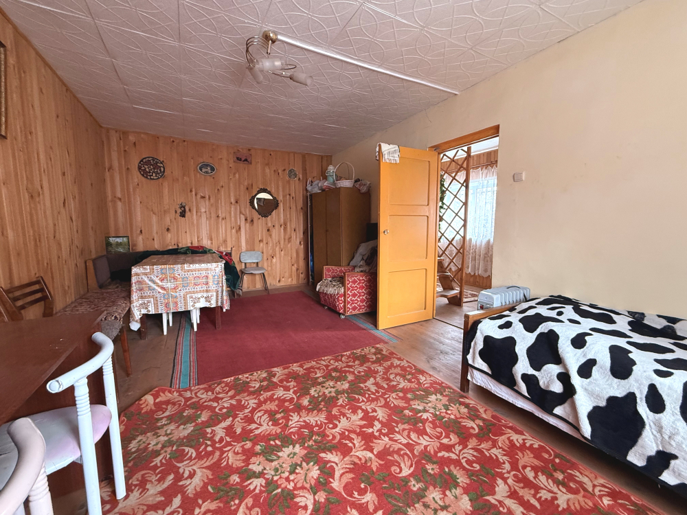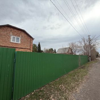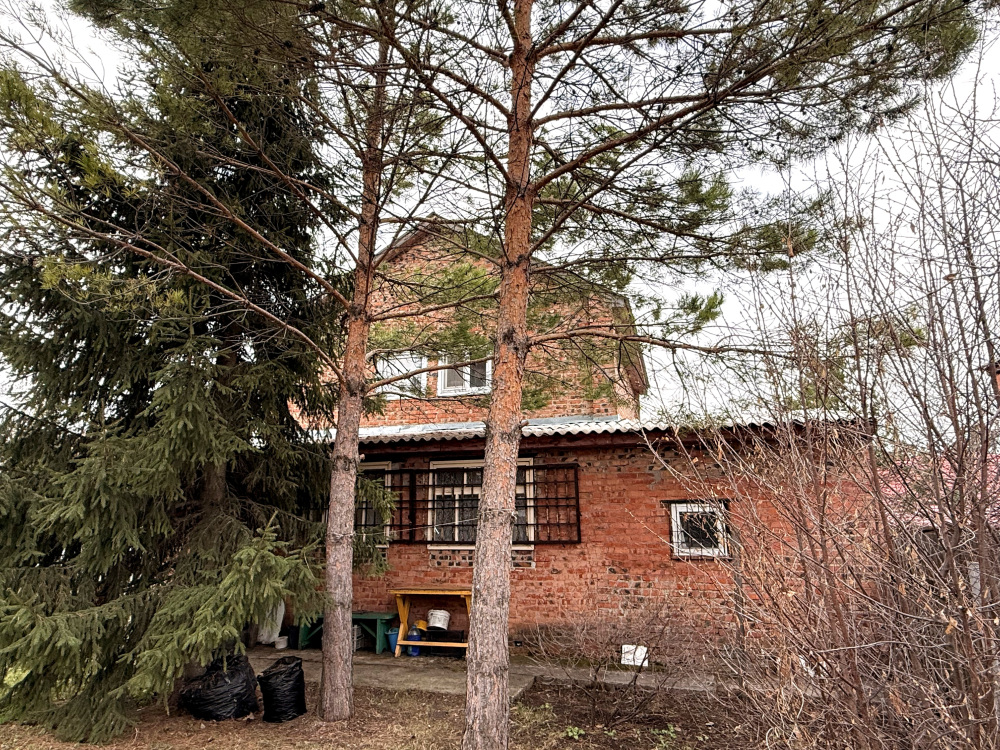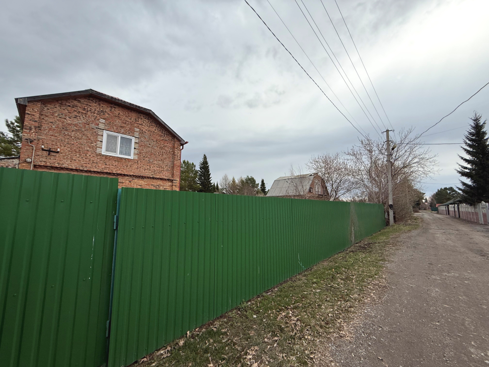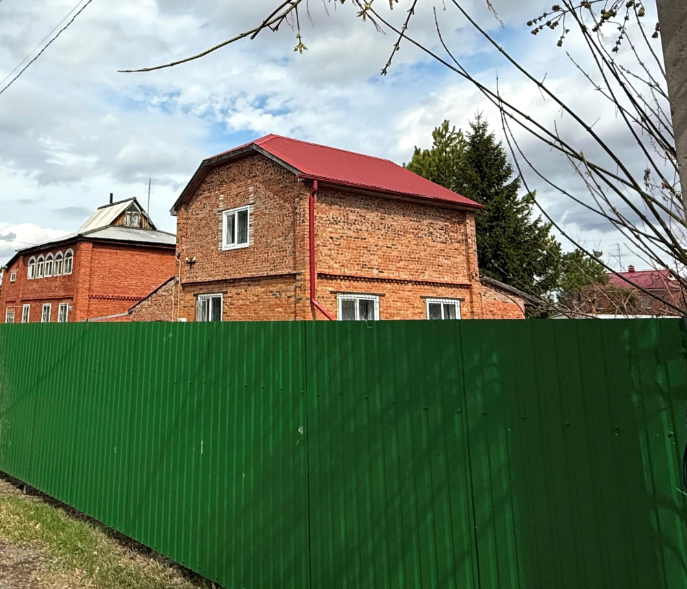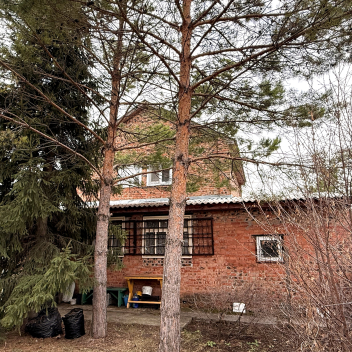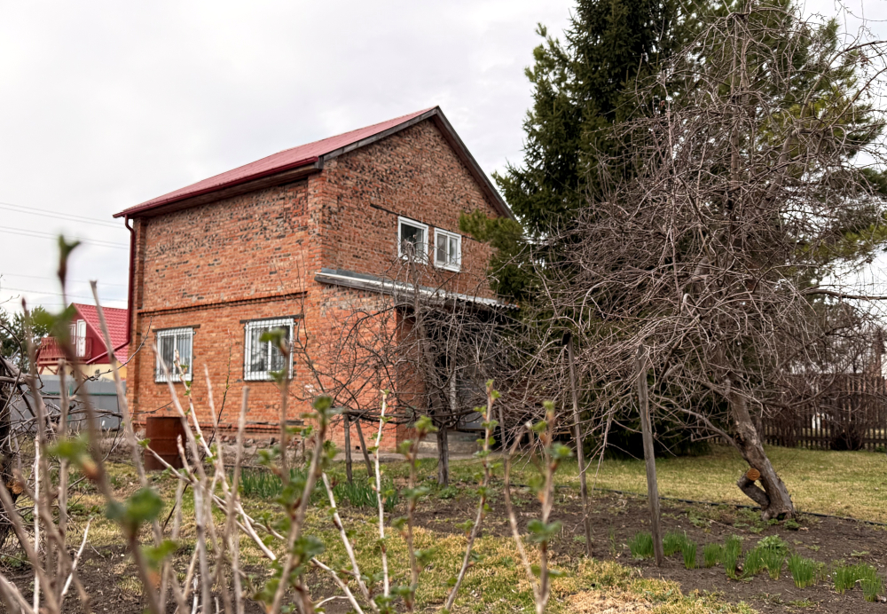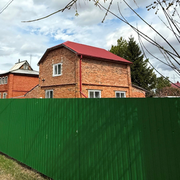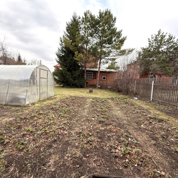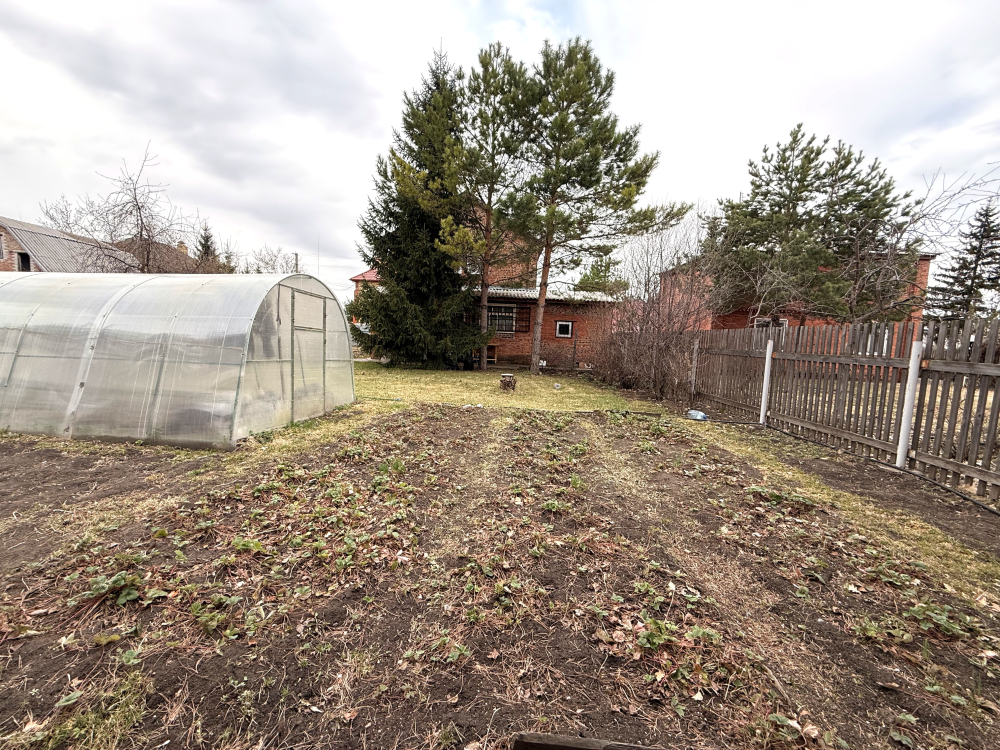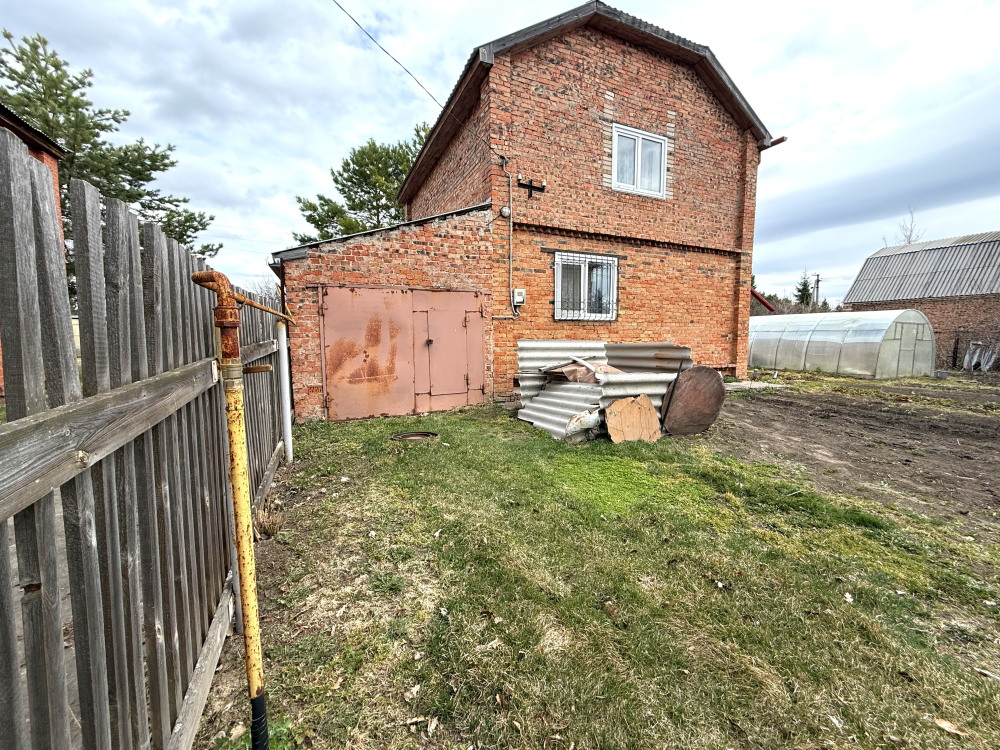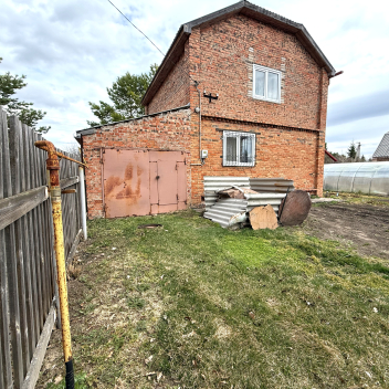 Земля в собственности, участок 8 соток, на нем построен двухэтажный кирпичный дом 72м2, плюс веранда 18м2, гараж и две теплицы.